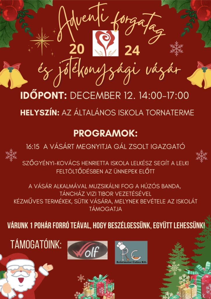 2023. december 07.-én megrendezésre került az iskola és az Alapítvány, mint segítő szervező rendezésében az Adventi Forgatag és Jótékonysági Vásár.